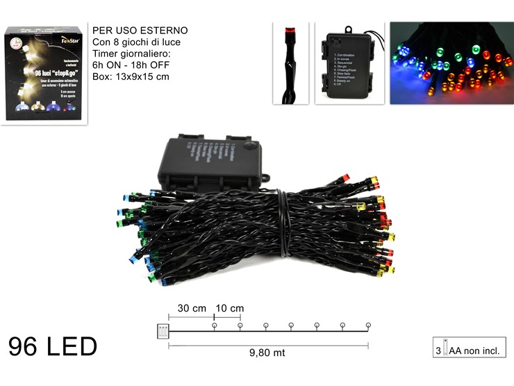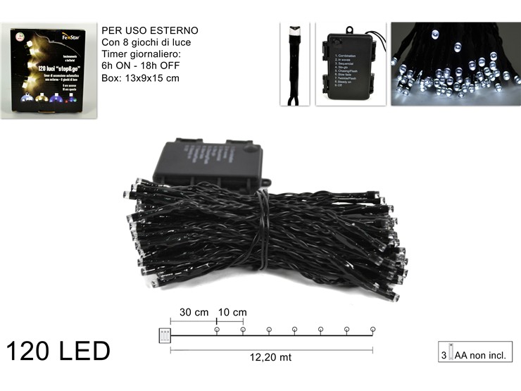 LUCI 20LED BATT.8GIOC.C/TIMER BIAN.FR.YC