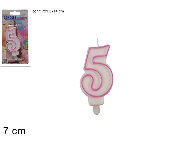 CANDELA n.5 BIANCA C/BORD.CELESTE2006022 - Party > Candeline > Numeri Classici 1 - Ingrosso B2B Magazzini Scatigna