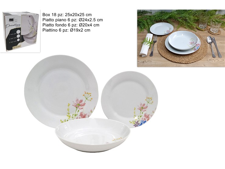 SERV.PIATTI QUADR.PORC.FIORI Pz.18 DF-S1 - Everyday > Tavola > Servizio Piatti Ceramica - Ingrosso B2B Magazzini Scatigna