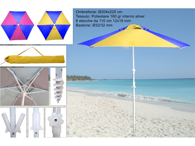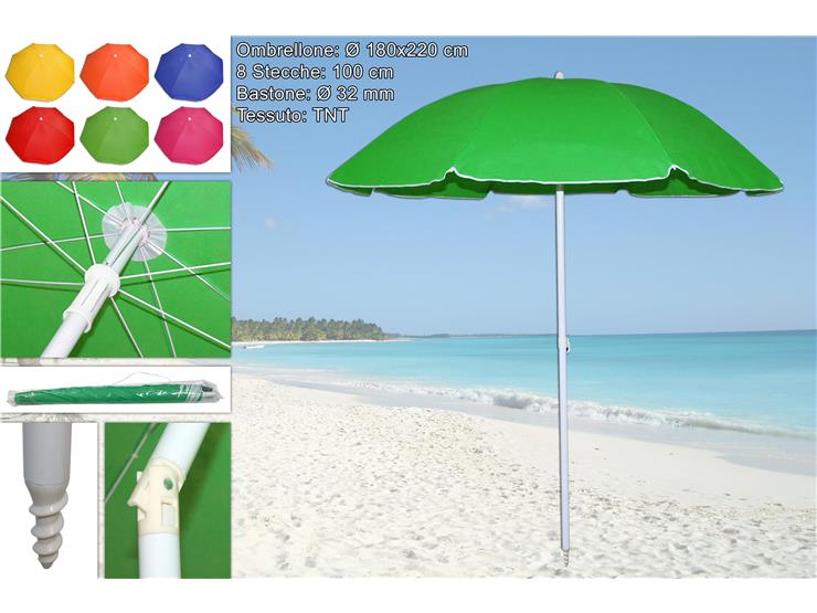 OMBRELLONE POL.C/MONGOLF.100/8 FIB.VET.6 - Summer > Arredo E Attrezzature Da Esterno > Ombrelloni Spiaggia - Ingrosso B2B Magazzini Scatigna
